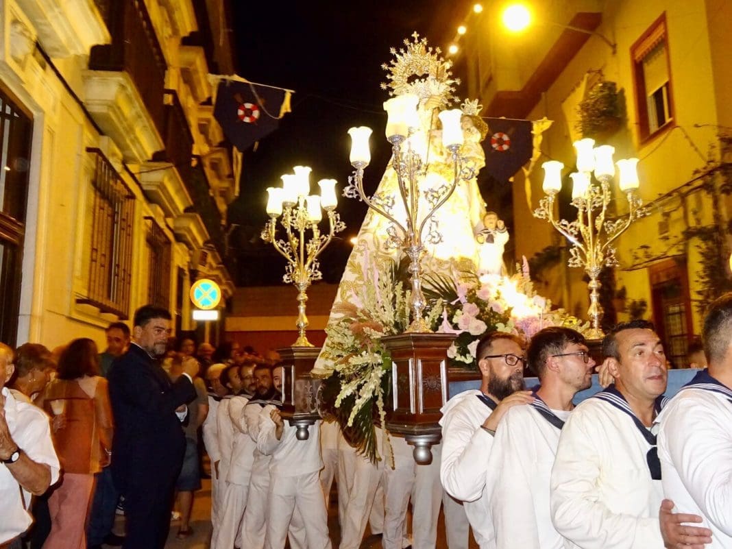 El Alma de Raval, lema de las fiestas de este año, se ha propagado por este rinconcito de Alicante que linda con el Benacantil y el Mediterráneo”. La Virgen del Socorro estrena una saya de terciopelo blanco roto, hecha en Sevilla por Francisco Paredes.