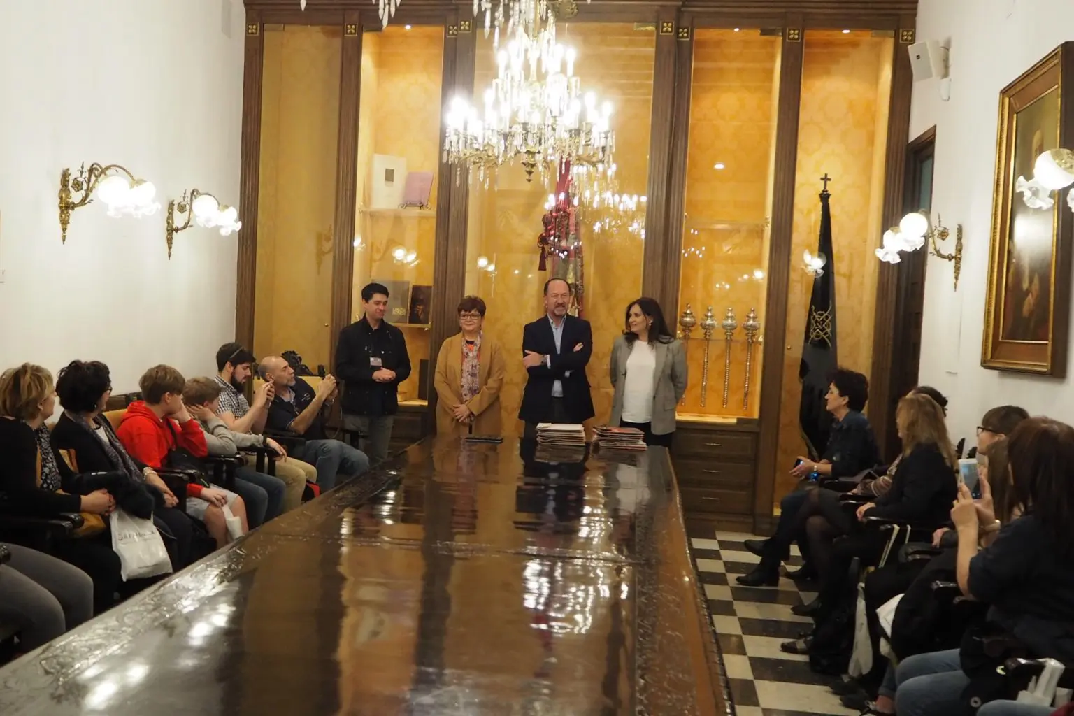 El alcalde recibió a los estudiantes en la sala del Oriol, donde procedió a darles la bienvenida al municipio y les invitó a “disfrutar de la ciudad, a conocer nuestra historia, nuestra cultura y personajes ilustres, y a volver siempre que lo deseen”, haciéndoles obsequio de un emblema con la vista de la ciudad desde los azudes del río.