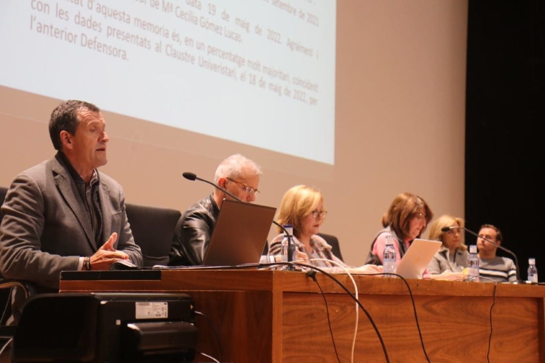 Otro de los puntos del día en la sesión del claustro ha sido la lectura del informe del defensor universitario a cargo de Pedro Femenía, correspondiente a las actividades y actuaciones realizadas entre septiembre de 2021 y agosto de 2022.
