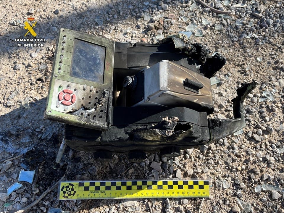 Realizado el registro y analizados los indicios recogidos durante las actuaciones, los agentes del Área de Investigación consiguieron localizar el aparato, que se encontraba parcialmente calcinado en las cercanías del domicilio inspeccionado.