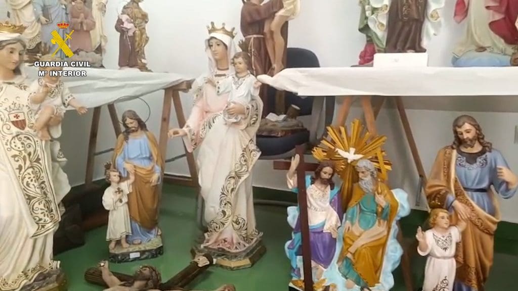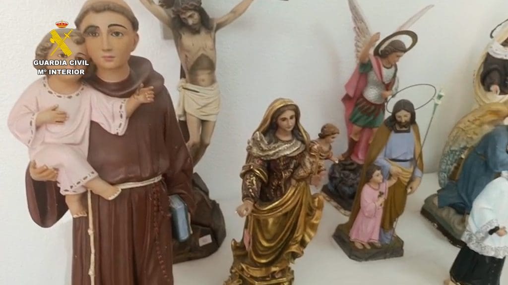 Se han recuperado más de medio centenar de imágenes sacras, valoradas en cerca de 100.000 euros de las que, gran parte, se encuentran depositadas en el Puesto de la Guardia Civil de Torreagüera a la espera de ser identificadas por sus legítimos propietarios.