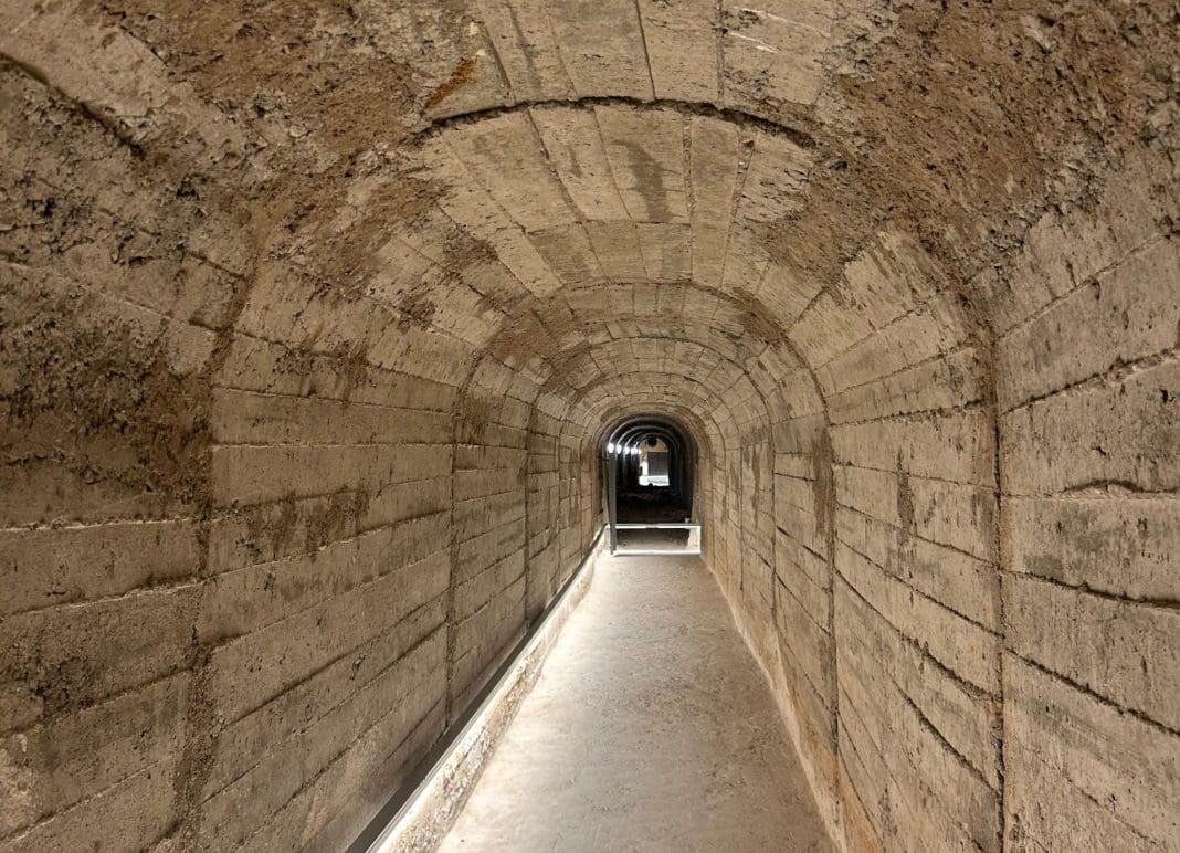 Su arquitectura de largos pasillos paralelos tuvo en origen tres accesos, de los cuales solo dos llegaron a terminarse. Hoy, estas entradas han sido recuperadas y abiertas al público para el inicio de su visita.