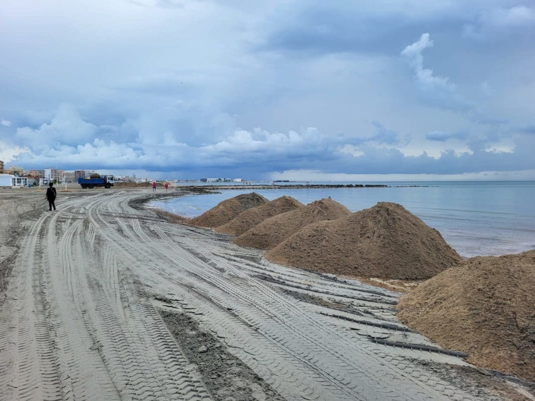La primera acción es la realimentación con arena de toda la zona. Se utilizarán 350 metros cúbicos de arenas obtenidas del cribado de arribazones procedentes de los acopios obtenidos en las playas de Santa Pola.
