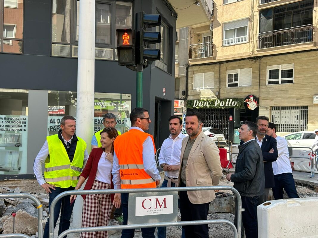 El alcalde de Elche, Pablo Ruz, ha visitado este lunes las obras junto al concejal de Servicios Públicos, Claudio Guilabert, y la edil de Distrito, Loli Serna. Durante la visita, el regidor ha subrayado que se trata de «un espacio muy deteriorado, con más de 40 años prácticamente sin renovar, con aceras en mal estado y numerosas deficiencias acumuladas».