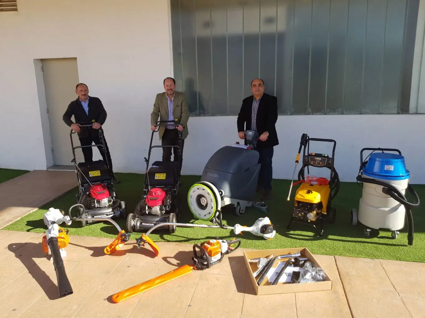 Así, la Concejalía de Deportes cuenta  ahora con una nueva hidrolimpiadora, cuatro cortacésped, dos cortabordes, una sopladora, una fregadora, un aspirador industrial, un cortasetos, y dos limpiafondos. Valverde indicó que de esta manera “actualizamos gran parte de la maquinaria que las brigadas emplean diariamente para la puesta a punto de las instalaciones deportivas, facilitando así su trabajo y se reducen los tiempos en las tareas llevadas a cabo”, aseguró Valverde.
