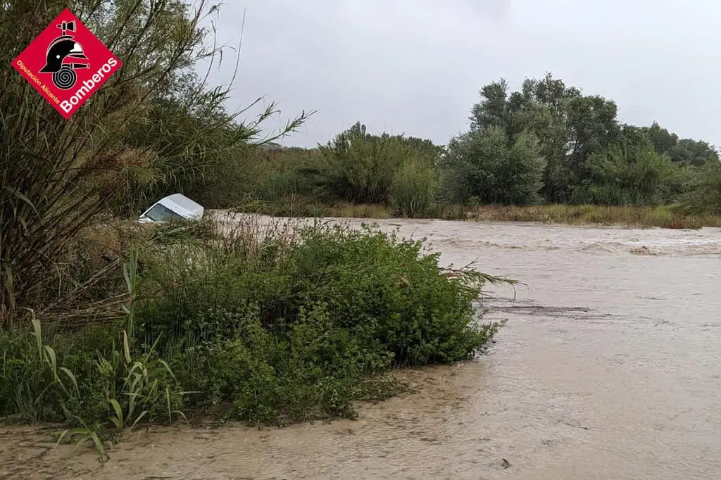 Según fuentes del Consorcio Provincial de Bomberos, a las 7:50 horas se ha rescatado a un hombre de mediana edad que se encontraba atrapado en un coche, sin poder salir y rodeado de agua por las fuertes lluvias cerca del aeródromo de Alcocer de Planes.