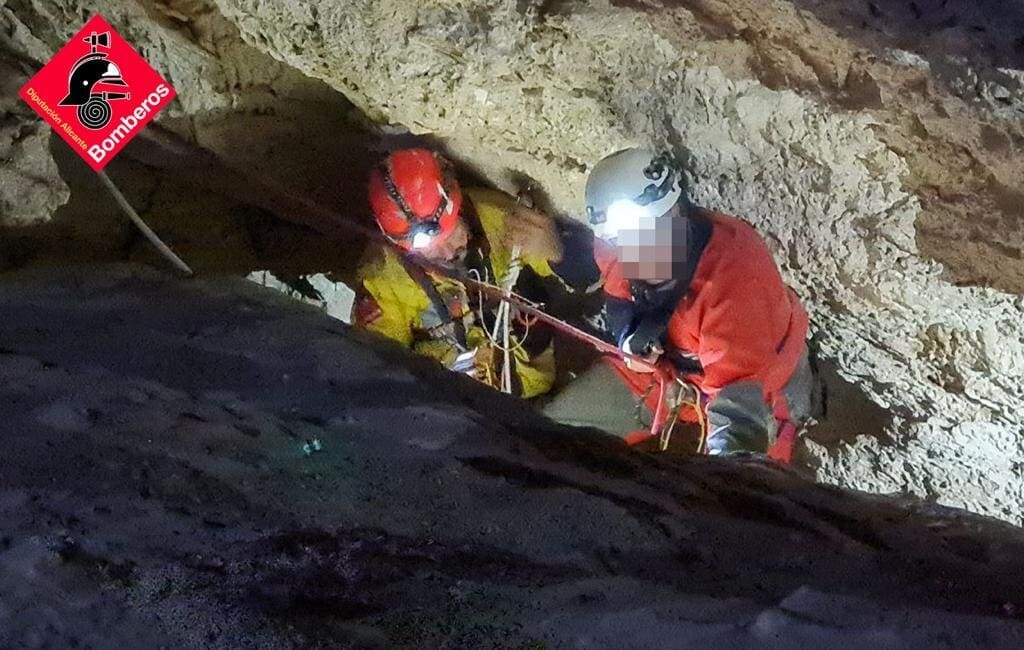 Los efectivos de rescate del Consorcio de Bomberos realizaron una intervención para ayudar a salir a un hombre atrapado en una cueva de Monóvar.
