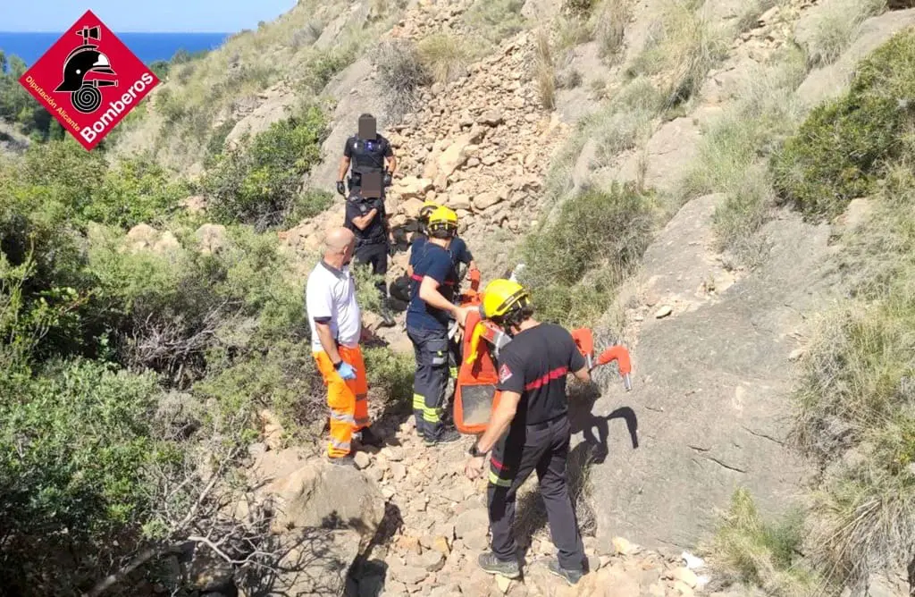 Los Bomberos del parque de Benidorm han rescatado a un hombre herido en las inmediaciones de una ladera en los accesos a la Punta del Cavall en Benidorm.