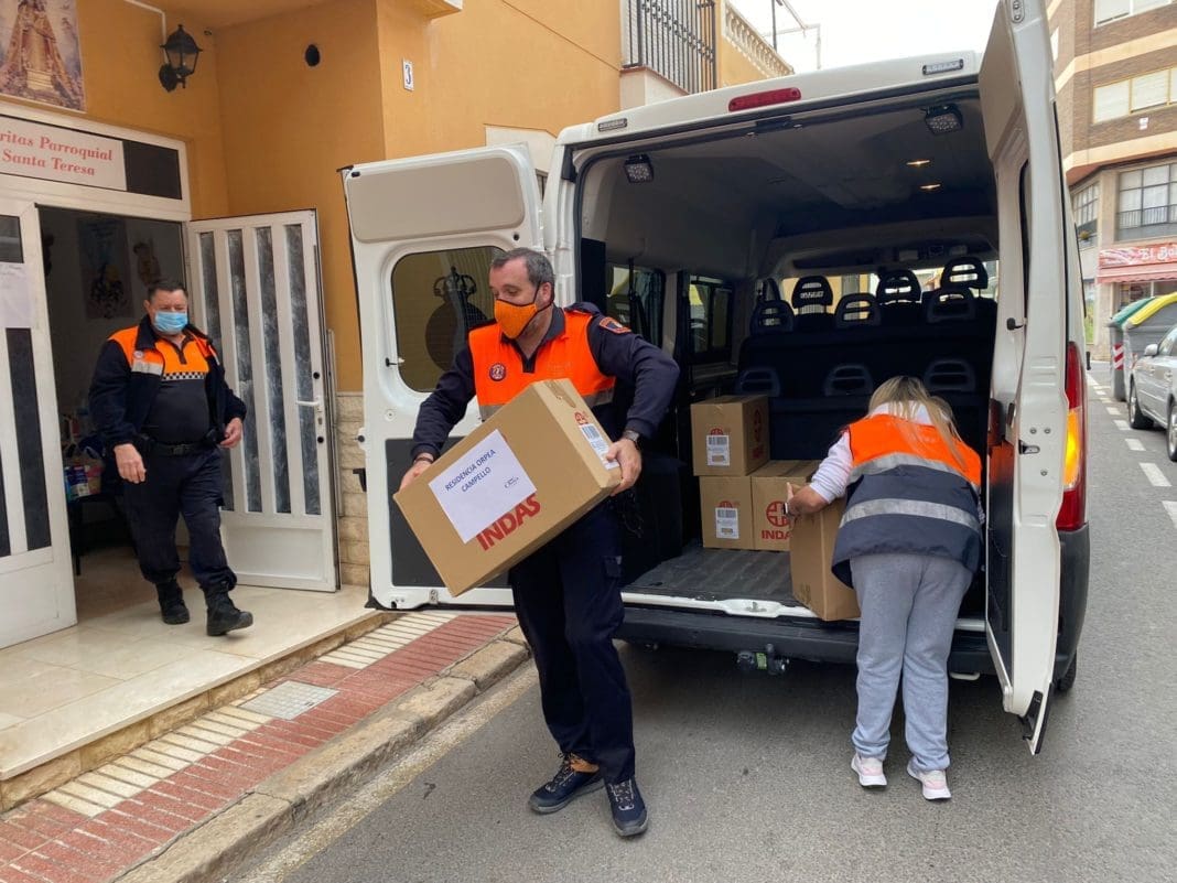 Los voluntarios de Protección Civil se han encargado de recoger el material, que ha sido depositado en la sede de Cáritas, donde ya atienden a varias familias desplazadas y que necesariamente viven entre nosotros gracias a las aportaciones altruistas de los campelleros.