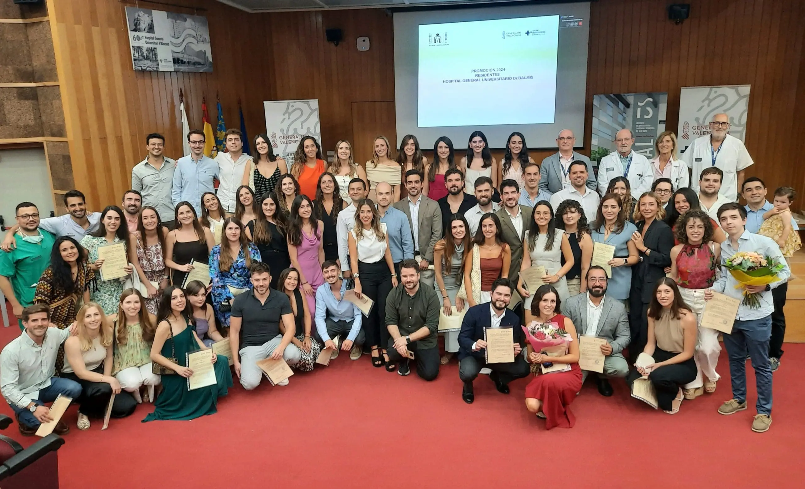 El Hospital General Universitario Doctor Balmis ha celebrado el tradicional homenaje a los profesionales que acaban de finalizar su formación, que este año son un total de 58. En concreto, se trata de 53 MIR, cuatro FIR y un BIR, que comienzan ya su andadura como especialistas sanitarios.