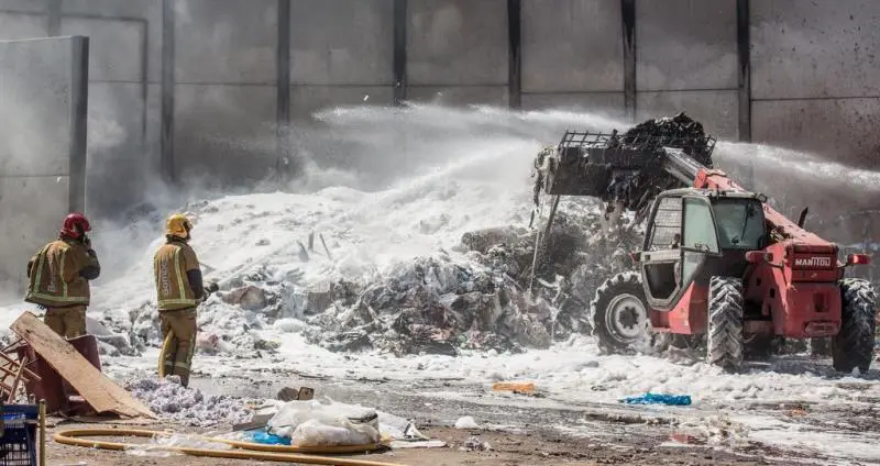 Según el Consorcio Provincial de Bomberos, el fuego se ha iniciado a primera hora de la tarde, en torno a las 14.30 horas en una zona a cielo abierto de la planta y ha afectado a residuos de rechazo, que son los que quedan una vez separada la madera y hierro, principalmente.