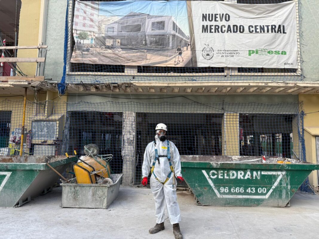 Este lunes han comenzado los trabajos de retirada del fibrocemento del Mercado Central de Elche, una actuación obligatoria y regulada por ley que se enmarca dentro del proceso de rehabilitación integral del edificio y que está previsto que se prolongue durante alrededor de tres semanas.