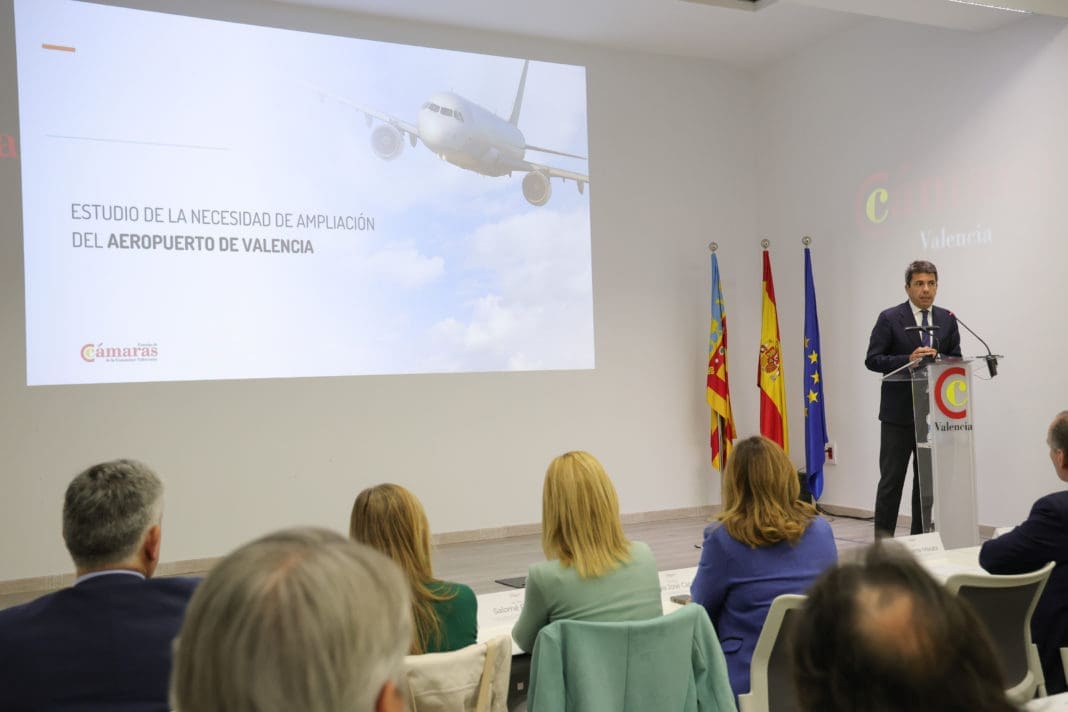 El jefe del Consell ha asistido a la presentación del estudio ‘Impacto económico de la ampliación del aeropuerto de Valencia’ elaborado por las Cámaras de Comercio de la Comunitat Valenciana.