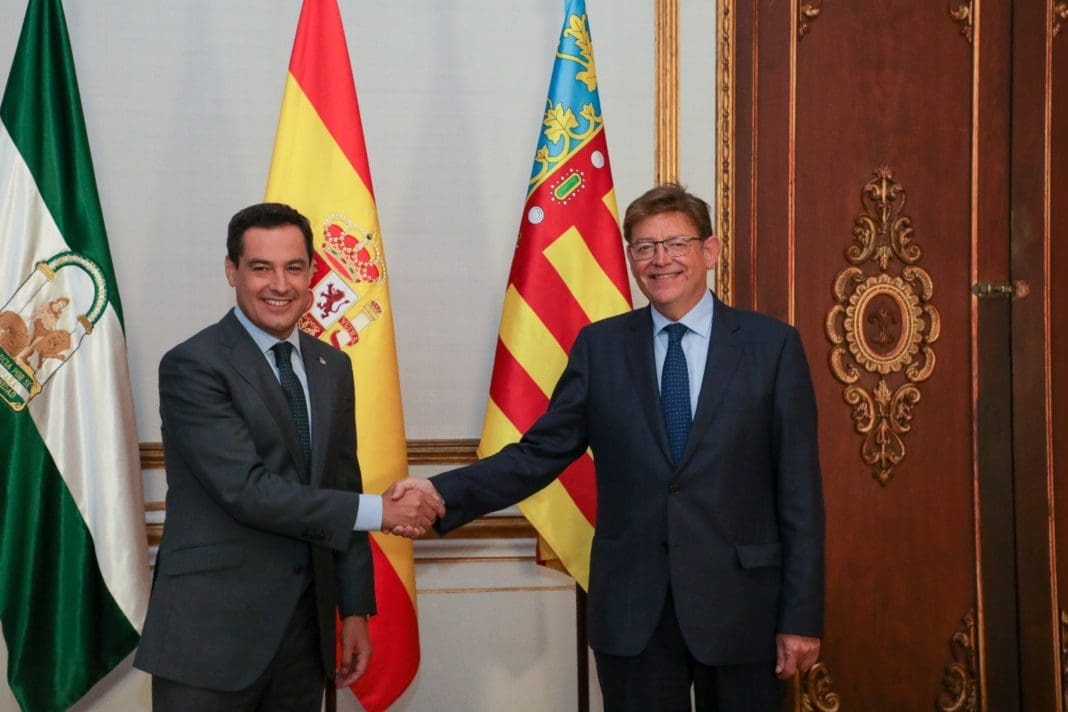 El ‘president’ de la Generalitat Valenciana, Ximo Puig, se ha reunido esta mañana con su homólogo andaluz, Juan Manuel Moreno Bonilla, en el Palacio de San Telmo de Sevilla para abordar la reforma de la financiación autonómica, que lleva caducada desde 2013. Ambas comunidades han firmado una “alianza común” para exigir al Gobierno “más financiación” para poder mantener el Estado de bienestar porque afirman que el modelo actual está “caducado” y es “discriminatorio, complejo y poco trasparente”.