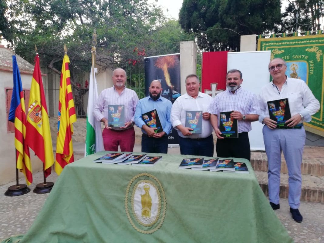 Los jardines de la finca la Barbera acogieron ayer el primer acto oficial de las fiestas de Moros y Cristianos de la Vila Joiosa, la presentación de su revista oficial. El acto contó con la presencia del teniente de alcalde del Ayuntamiento, Joan Lloret; el presidente de la Asociación Santa Marta, José Llinares; y las personas que este año ostentan los cargos de rey moro y rey cristiano, Pere Miquel Marcet Arlàndiz, de los Beduïns y Pere Soriano Llinares de la compañía Catalans.