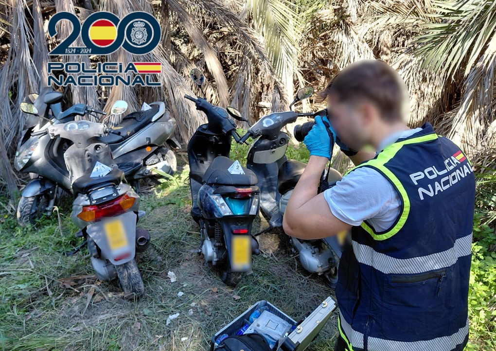 La Policía Nacional ha detenido en Elche a dos menores de edad como presuntos autores de una serie de robos con fuerza de ciclomotores cometidos en un corto periodo de tiempo. La investigación permitió recuperar cinco vehículos sustraídos, que ya han sido devueltos a sus propietarios.