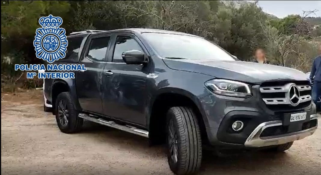 Una vez detenidos, se llevaron a cabo dos registros en domicilios de las localidades de Benidorm y Denia, localizando en éste último el vehículo sustraído en la localidad de Villajoyosa al cual ya le habían eliminado el número de bastidor, cambiado la centralita que permite el arranque del vehículo y le habían colocado unas placas de matrícula suizas.