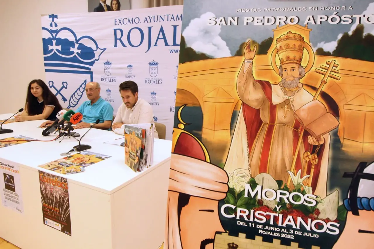 El alcalde de Rojales, Antonio Pérez, y el concejal de Fiestas, Jesús Martínez, han presentado este jueves el libro y el cartel anunciador de las fiestas patronales en honor a San Pedro Apóstol y de Moros y Cristianos 2022.