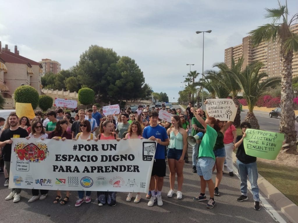 Una de las concentraciones más madrugadoras de la provincia ha sido la organizada por la plataforma Por un Espacio Digno para Aprender, que reúne a una decena de AMPAS, así como docentes y alumnado de la zona de playas del norte de la ciudad de Alicante. A las 9:30 alrededor de un centenar de personas, según los organizadores, efectuaban una marcha entre el IES Cabo de la Huerta y el IES Radio Exterior, antes de dirigirse a la concentración en la ciudad.