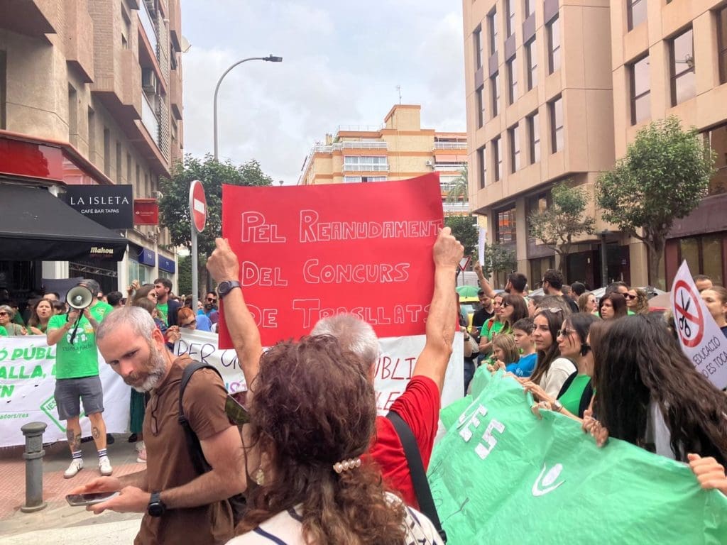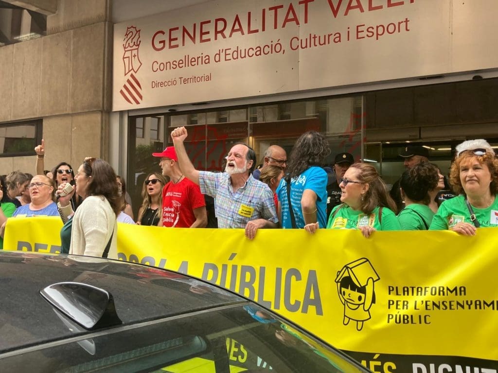Mientras, a las puertas del centro administrativo de Educación en la calle Carratalá han resonado altas las voces, jaleadas por megafonía: «Rovira, escucha, la pública está en lucha»; «Mira, Rovira, huelga educativa!; o «No a les retallades en educación».