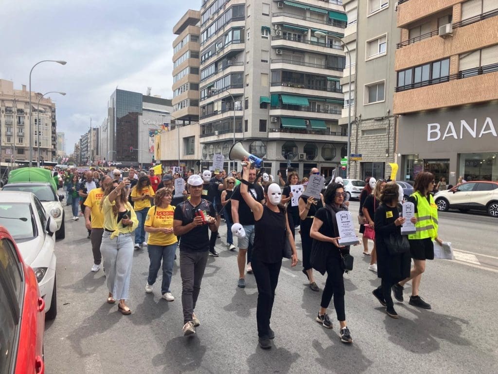 A estas se ha sumado una marcha organizada por docentes de la Escuela Oficial de Idiomas en Alicante, a la que se han sumado unas 200 personas que han recorrido a pie el trayecto hasta la calle Carratalá. Y también desde la playa de San Juan, la pataforma Por un Espacio Digno para Aprender congregaba a un centenar de personas desde el IES Cabo de la Huerta al IES Radio Exterior para posteriormente unirse a la reivindicación en la Dirección Territorial de Educación.