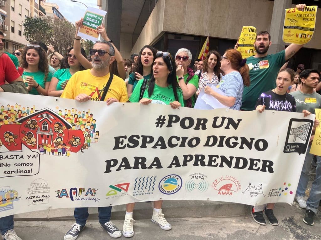 Desde primera hora de la mañana se han sucedido las concentraciones hasta en 11 municipios valencianos, convocados por la Plataforma per l’Ensenyament Públic. Concretamente en Alcoy, Alicante, Dénia, Elche, Petrer y Torrevieja, en la provincia alicantina; Gandía, Port de Sagunt y València, en la valenciana, así como en Castellón.