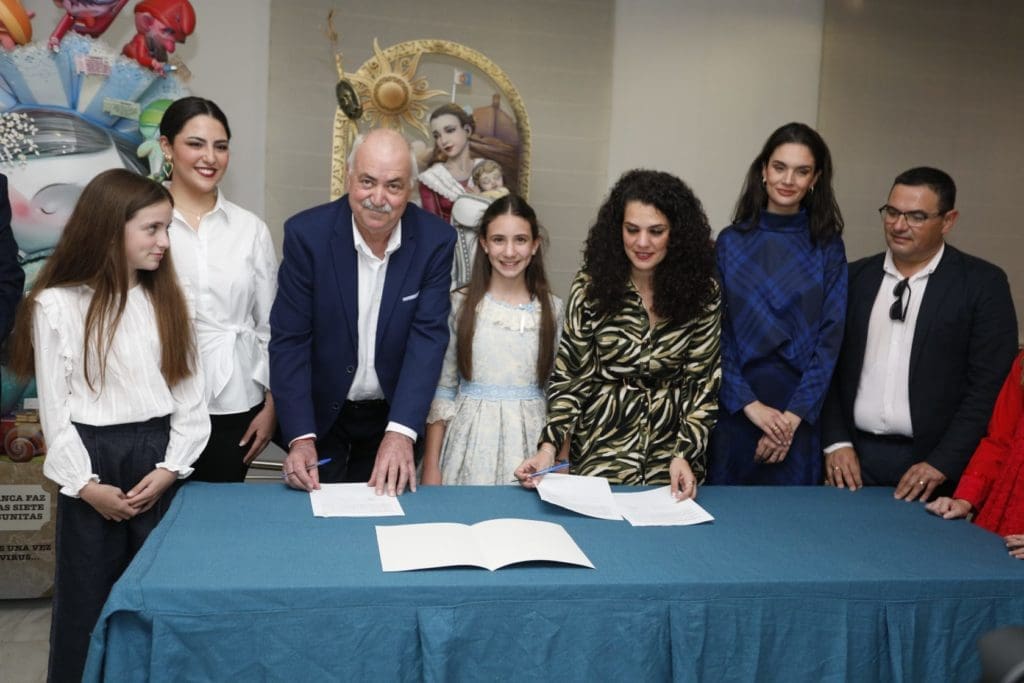 A la conclusión del acto, la comisión de la hoguera Sagrada Familia, que preside Carlos Gosálbez, acompañada por Cristina Cutanda, ha cedido al Museo de Hogueras los dos ninots indultats por votación popular de las Hogueras 2023. El adulto es original de Santaeulalia Tematización y estaba situado en la hoguera ‘This is love’.