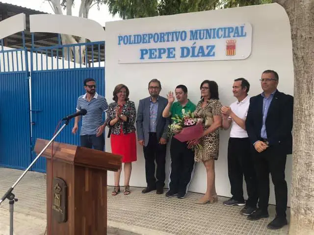 Ayer tuvo lugar un acto oficial, al que asistió la alcaldesa, María Gómez, junto al concejal de deportes, Alfonso García y el resto de la corporación, para dar nombre a las instalaciones deportivas de El Saladar, que a partir de ahora se denominarán Polideportivo Municipal Pepe Díaz.