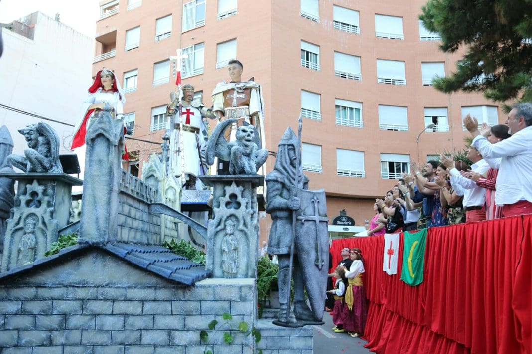 Los Caballeros Templarios que albergan este año la Capitanía Cristiana encabezados por Joaquín Abegón, y el alférez Juan José Martínez de los Caballeros de Montesa han presidido el desfile, protagonizado además por la Abanderada de la Filà, Julia Mazaruela, la Abanderada del Capitán, Mercedes Vivó, y la Dama, María Belén Abegón.