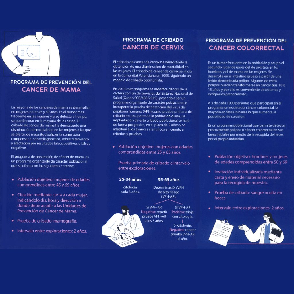 Desde la Concejalía de Sanidad se ha optado por difundir mediante folletos informativos los programas realizados por la Conselleria de la misma área.