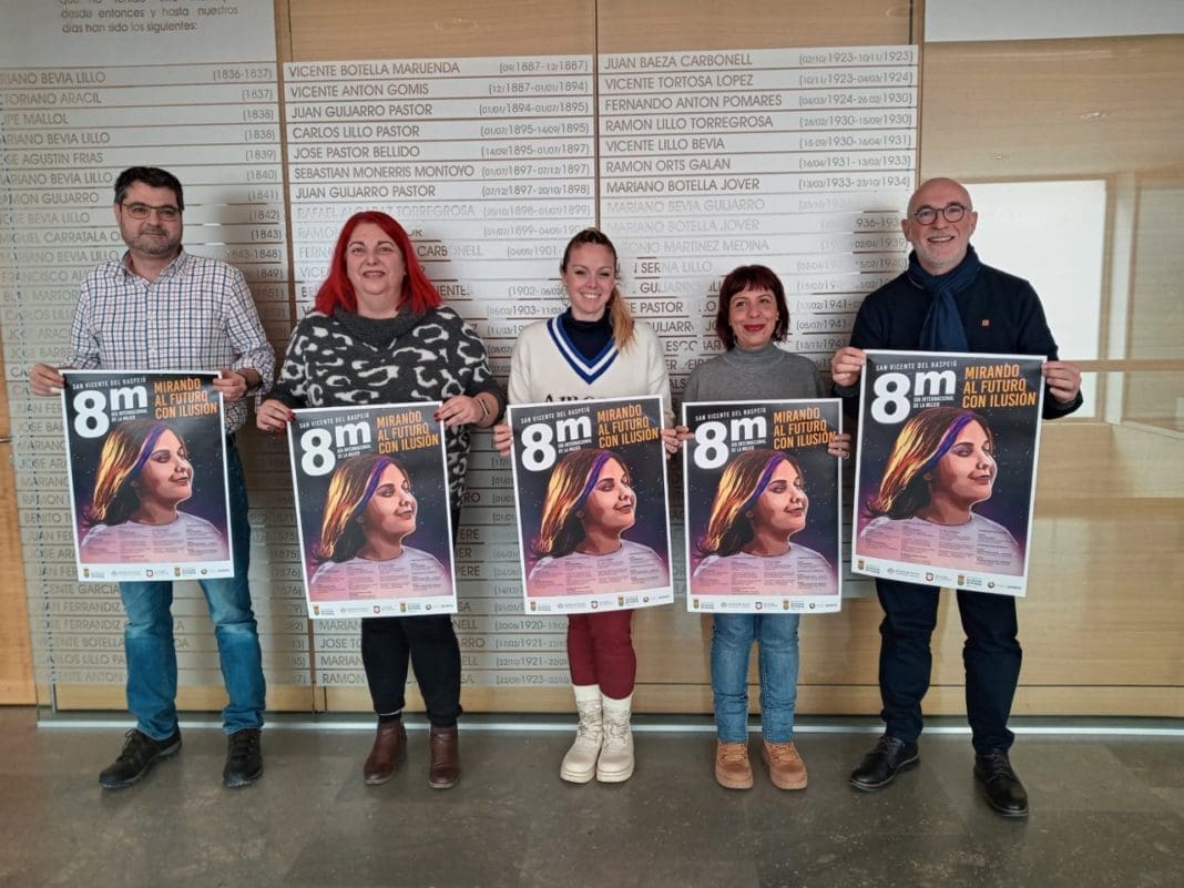 San Vicente del Raspeig ha presentado este miércoles 1 de marzo su programa de actividades por el Día Internacional de la Mujer. La Concejalía de Igualdad e Integración, dirigida por Isabel Candela, coordina una quincena de propuestas para distintos públicos y temáticas, junto a las áreas de Juventud, Cultura y Deportes. Este año el 8M se celebrará bajo el lema «Mirando al futuro con ilusión».