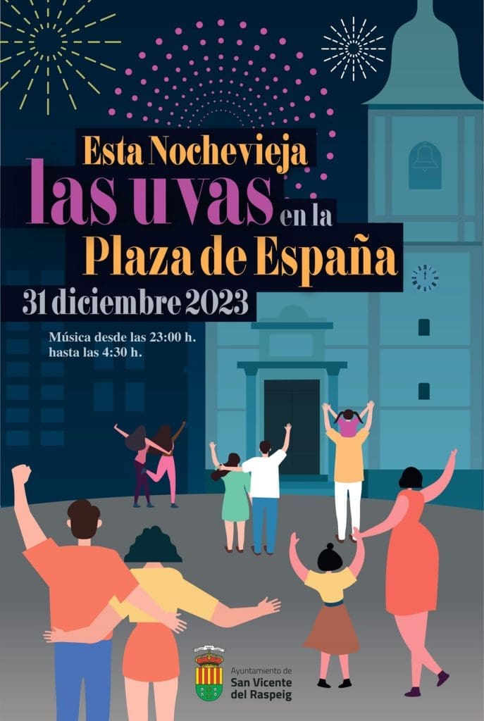 El alcalde de San Vicente del Raspeig despedirá este ejercicio y dará la bienvenida al nuevo año en un acto popular abierto a toda la ciudadanía que tendrá lugar la noche del 31 de diciembre de 2023 al 1 de enero de 2024 en la plaza de España. A partir de las 23 horas y hasta las 4:30 horas una discoteca móvil amenizará el encuentro en el que se repartirá entre todos los presentes cotillones, hasta fin de existencias.