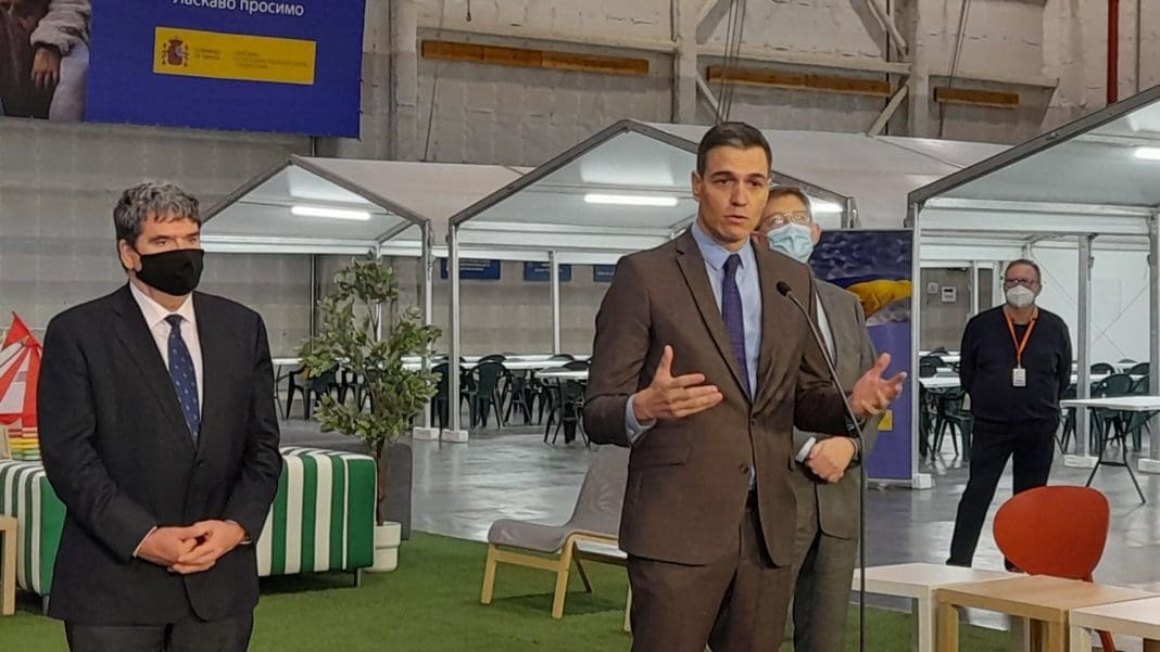 El presidente del Gobierno, Pedro Sánchez, ha visitado esta mañana las instalaciones del Centro de Recepción, Acogida y Derivación (CREADE) para refugiados en Ciudad de la Luz donde ha apelado a la solidaridad ante las «dramáticas consecuencias de la guerra» de Ucrania. En este sentido ha pedido consenso y unidad de la mayoría con el Plan de Respuesta de Medidas Económicas y Sociales aprobado por el consejo de Ministros este martes, 29 de marzo, ante la subida generalizada de precios. El Gobierno ha anunciado, asimismo, que en pocos días habrá expedido casi 70.000 permisos de protección temporal.