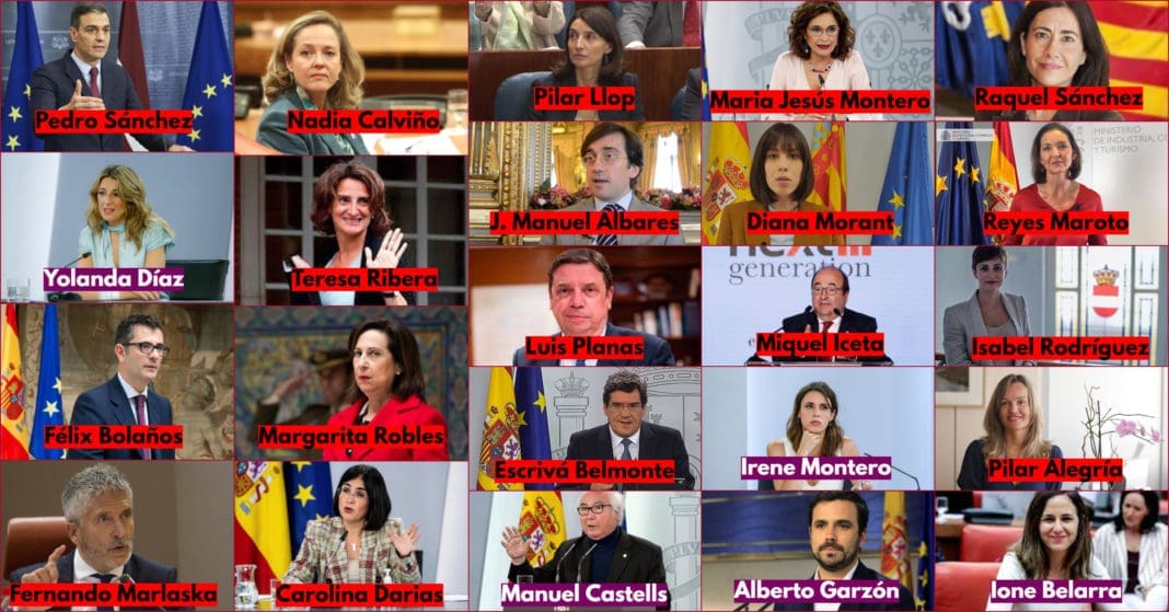 Asimismo, los ministros que abandonan el Gobierno son: Carmen Calvo, José Luis Ábalos, Isabel Celaá, Juan Carlos Campo, Arancha González Laya y José Manuel Rodríguez Uribes.
