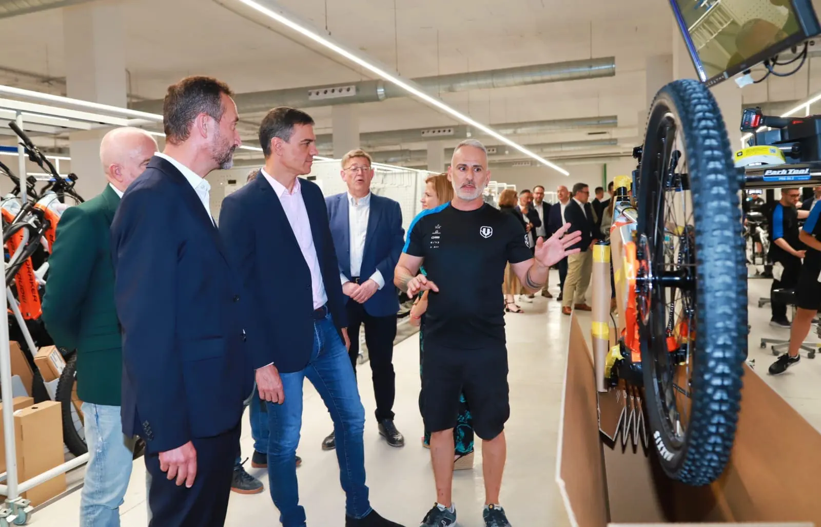 El presidente del Gobierno de España, Pedro Sánchez, ha visitado este viernes 5 de mayo las instalaciones de la empresa ilicitana Mondraker, momentos antes de participar en un acto de partido en la Universidad de Alicante.
