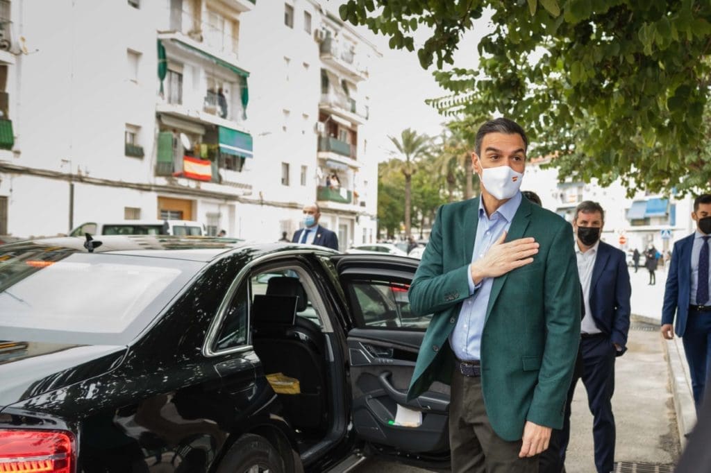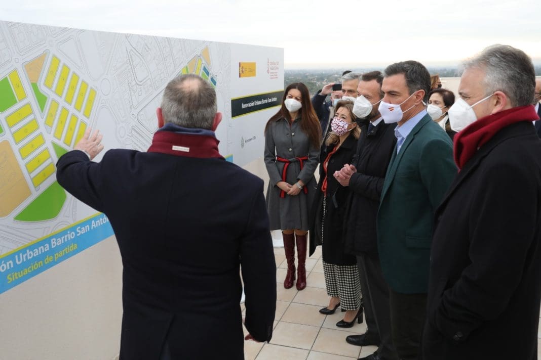 El presidente del Gobierno ha podido ver los nuevos edificios de viviendas que se han alzado en el barrio y los terrenos que acogerán otro nuevo bloque de pisos, durante un recorrido por el grupo San Antón en el que también han participado el alcalde de Elche, Carlos González, la consellera de Innovación, Carolina Pascual, y la delegada del Gobierno en la Comunitat, Gloria Calero.
