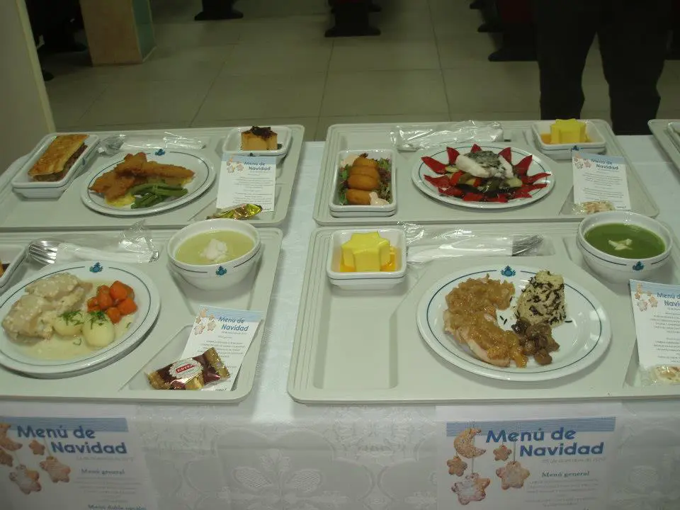 Para la cena de Nochevieja se servirá una ensalada gourmet con delicias de frutas, bacalao confitado con ajetes y con una guarnición de pimientos de piquillo y tarta brasileña de postre. En la comida de Año Nuevo los pacientes podrán disfrutar de un menú basado en un salpicón de gambitas, carrillera con salsa de turrón y guarnición de verduras de temporadas, y profiteroles con chocolate y tarta de queso para el postre.