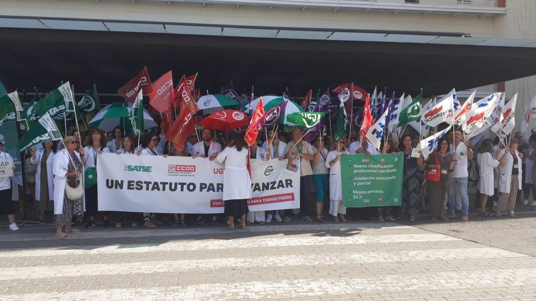 La protesta, convocada por los sindicatos Satse, CCOO, UGT y CSIF en centros sanitarios de las diferentes comunidades autónomas bajo el lema «Un estatuto para avanzar» (en València se ha celebrado ante el Hospital La Fe), denuncia que el Ministerio quiera «dar por finalizada la negociación» tras tres años de reuniones, «sin contemplar las mejoras» que necesitan cerca de un millón de profesionales y sus pacientes.