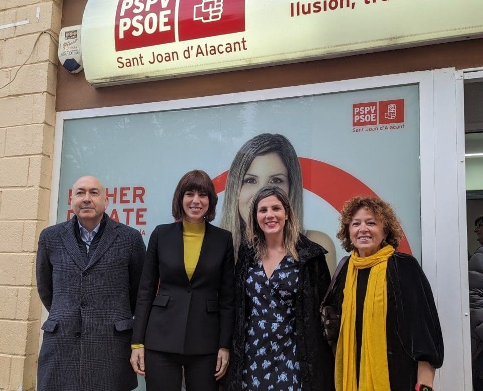 La Agrupación socialista de Sant Joan d’Alacant recibió ayer miércoles en la Casa del Pueblo a la Ministra de Ciencia e Innovación, Diana Morant, y a la Consellera de Innovación, Universidad, Ciencia y Sociedad Digital, Josefina Bueno, para llevar a cabo, junto a su portavoz y candidata a la alcaldía, Esther Donate, una charla sobre la mujer y la ciencia.