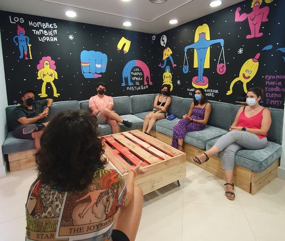Finalizado el mobiliario, se realizó un taller de pintura mural, centrado en el ámbito de la igualdad. En este taller se han trabajado inicialmente conceptos de igualdad de género, que posteriormente se han ido plasmando en un mural realizado por jóvenes, desde el diseño del boceto hasta la obra final, acompañados por dos profesionales, María Ivorra, experta en igualdad, y Toni Díaz, artista urbano.