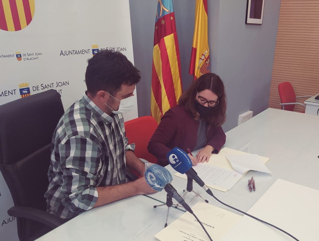 El alcalde de Sant Joan, Jaime Albero, ha firmado hoy con Elena Azcárraga, Directora General de Vivienda y Regeneración Urbana de la Conselleria de Vivienda y Arquitectura Bioclimática un protocolo para la cesión del derecho al tanteo y retracto de viviendas adquiridas por la Generalitat.