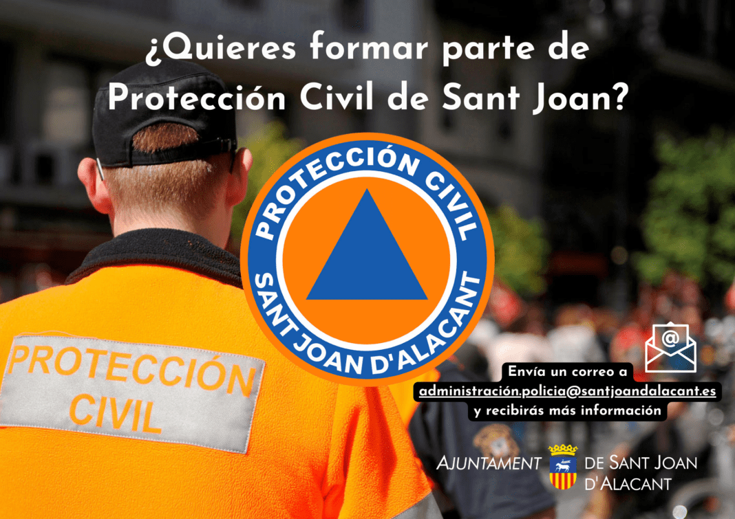 Los interesados en formar parte de Protección Civil podrán obtener información dirigiéndose a través de un correo electrónico a la siguiente dirección: administración.policia@santjoandalacant.es