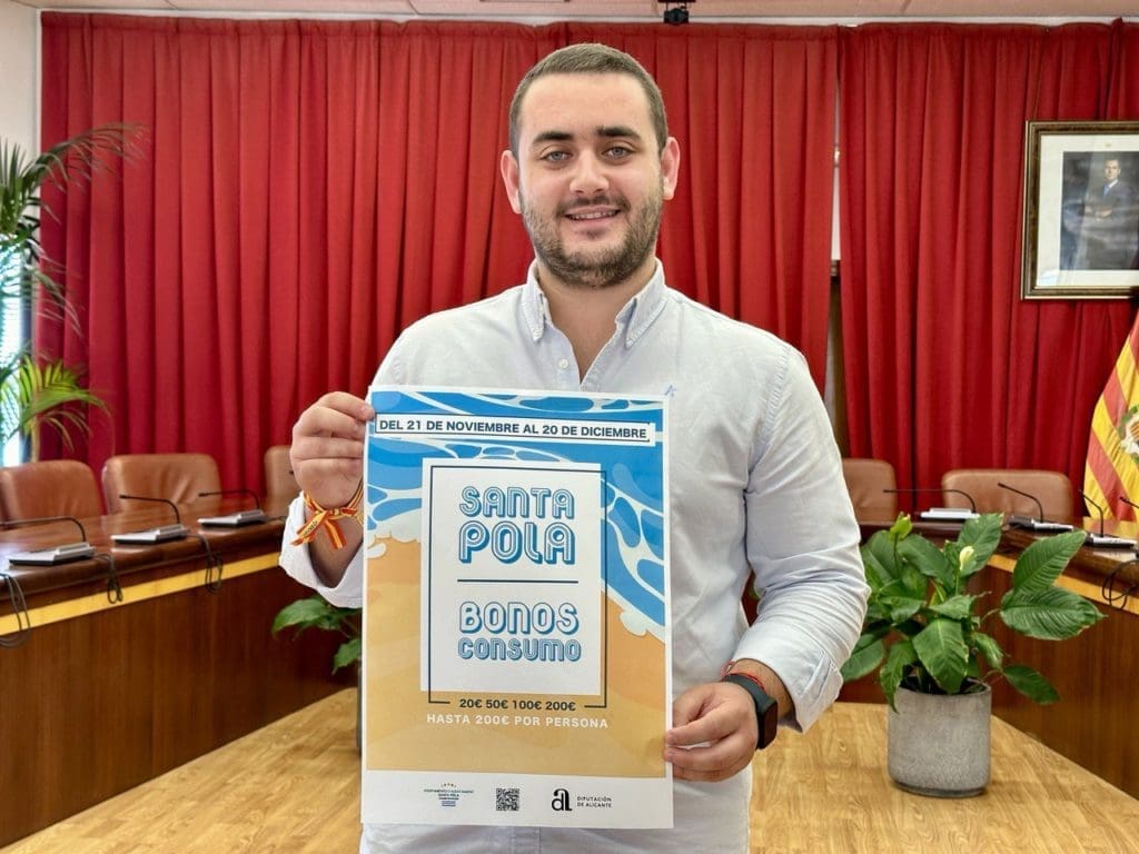 El Ayuntamiento de Santa Pola lanza la Campaña Bonos Consumo Santa Pola 2023, con la financiación de la Diputación Provincial de Alicante y la colaboración de la Cámara de Comercio de Alicante, con el fin de impulsar y reactivar la economía del comercio, la hostelería y servicios del municipio buscando la sinergia entre empresas y ciudadanos.