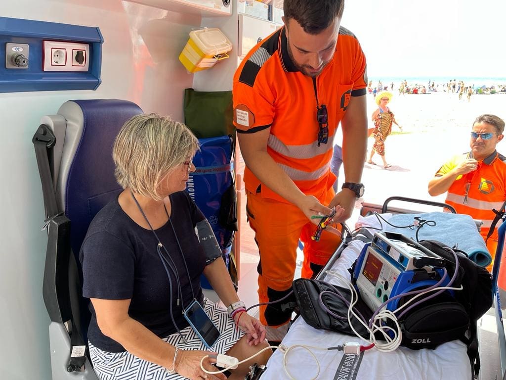 Todas las playas con servicio de socorrismo cuentan con desfibriladores y personal cualificado para su utilización. En la Playa de Levante, junto al área de baño adaptado, se encuentra la ambulancia medicalizada y equipada con monitores, equipo de curas, material para la toma de constantes vitales, collarines, colchón de vacío, férulas, aspirador de secreciones y oxígeno, entre otros.