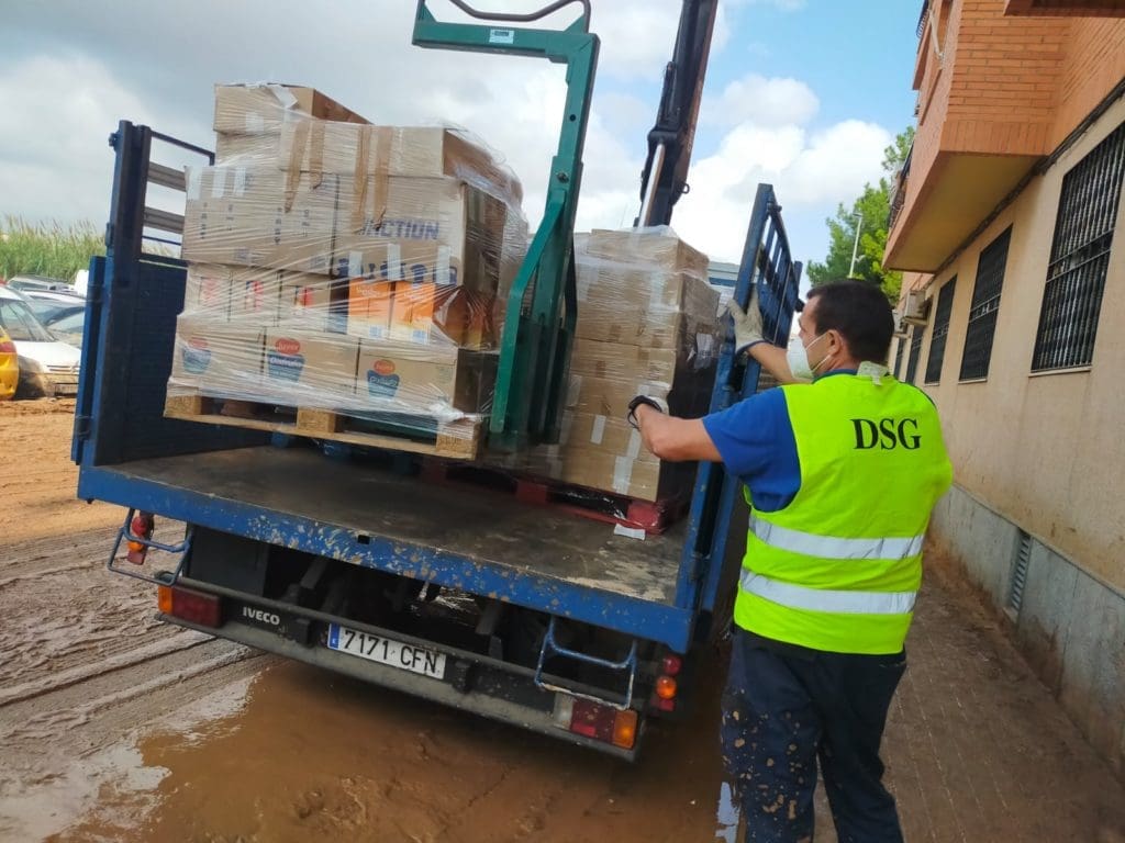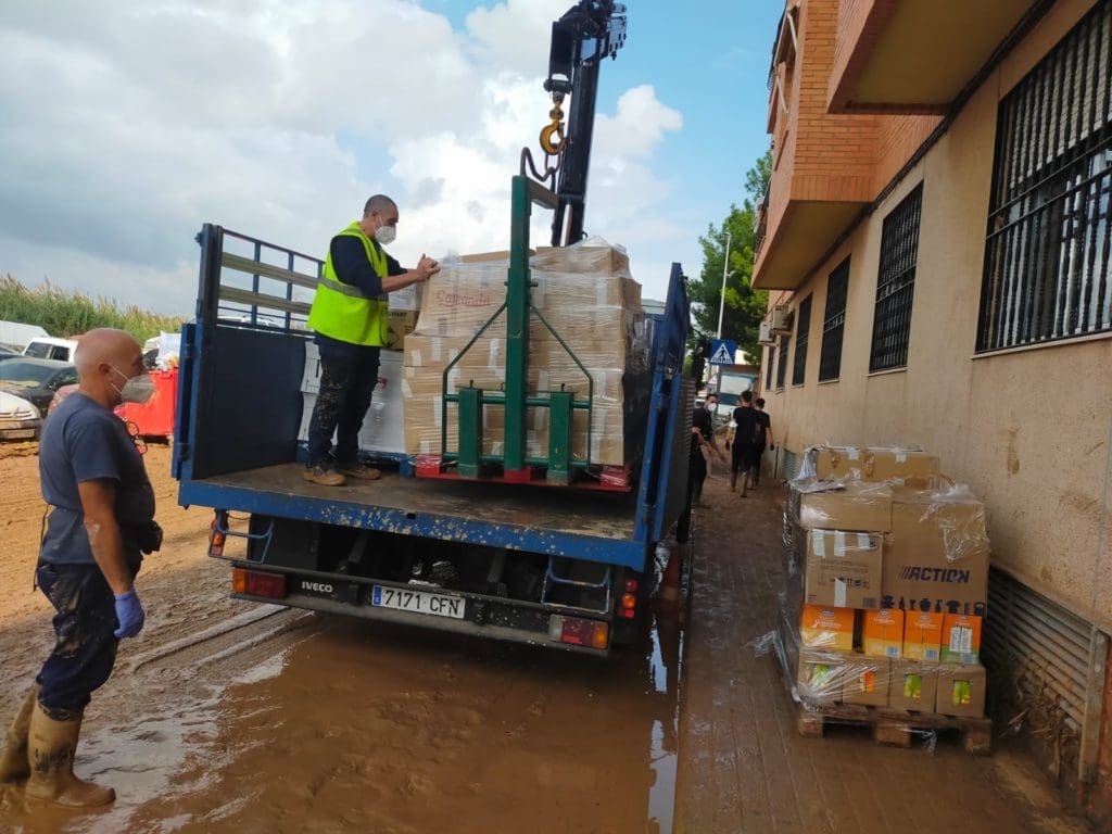 En total han sido enviados 7 palés de productos de limpieza (mascarillas, gel hidroalcohólico, guantes, cepillos, cubos, palas, rastrillos, botas agua, etc.), higiene personal, papel higiénico, comida para animales, medicamentos, útiles para bebé (chupetes, cremas, coches de paseo, silletas y algún que otro juguete) y algo muy importante, un palé con comida específica para intolerantes al gluten.