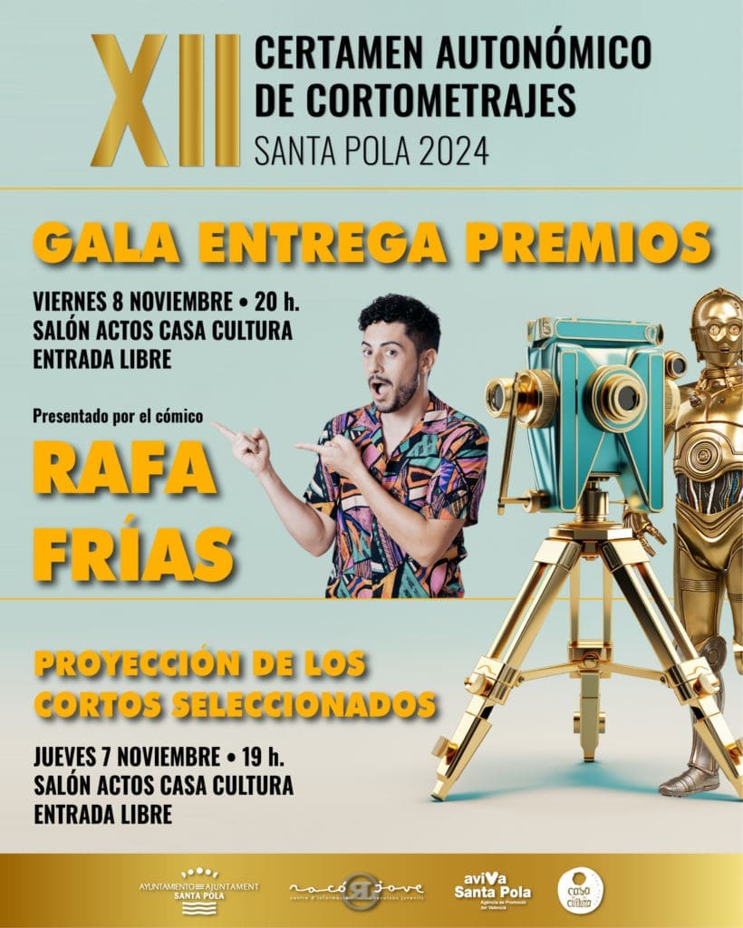 El viernes 8, a las 20,00 horas, tendrá lugar la gala de entrega de premios en la que se desvelará el orden de los tres mejores cortometrajes: “Periquitos” del alicantino Alex Rey, “Cava” del valenciano Jandro y “Adiós” del también alicantino Álvaro García.
