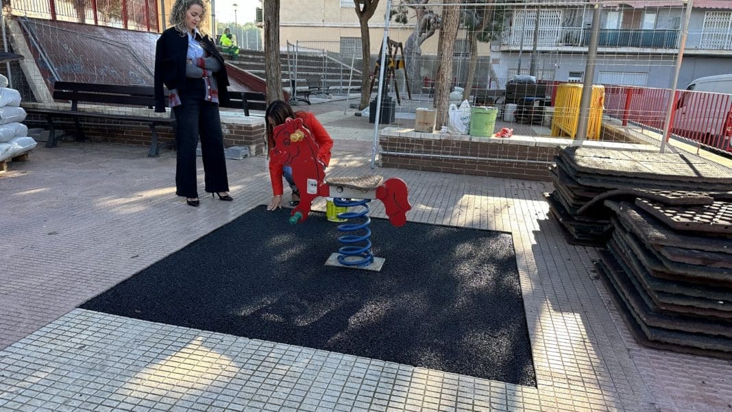 Las concejalas de Parques y Jardines, Encarni Ramírez, e Infraestructuras, Trini Ortiz, han visitado las obras que se están llevando a cabo en el parque infantil ubicado al inicio de la calle Pintor Sorolla, junto al colegio Hispanidad.