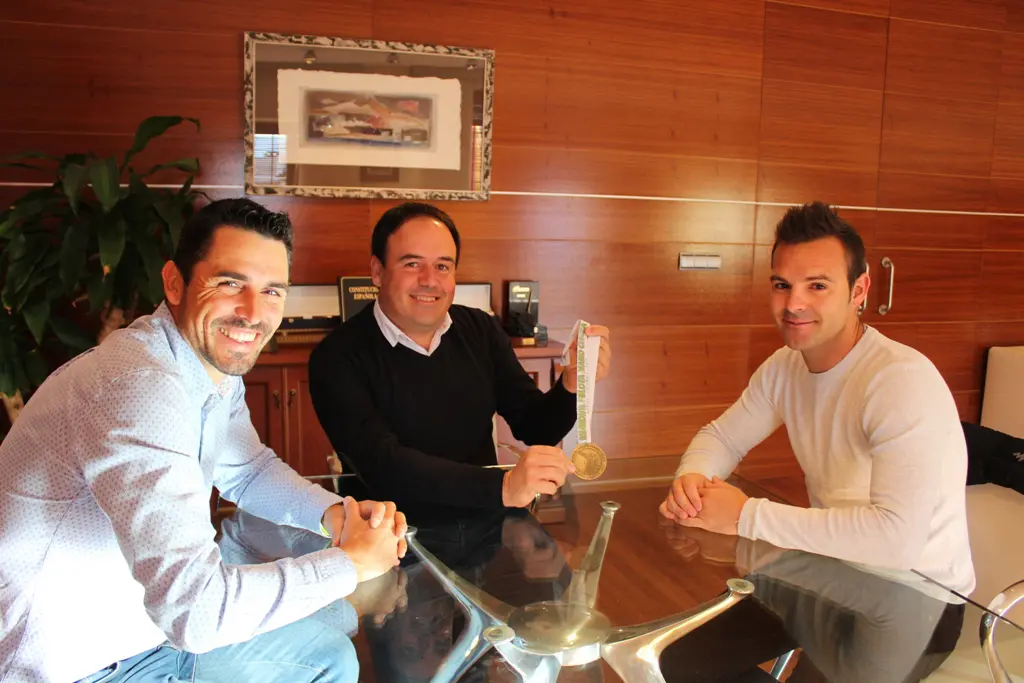EL ALCALDE DE FINESTRAT Y EL EDIL DE DEPORTES RECIBIERON A ORTUÑO PARA FELICITARLE POR SU TERCER MUNDIAL DE PILOTA.