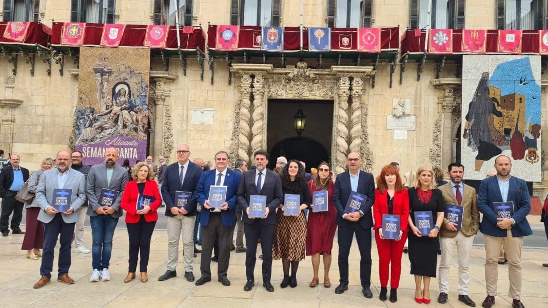 La presentación de la Revista ha prologado este viernes la Semana Santa de Alicante 2025, en la que desfilarán 11.000 cofrades y hermanos en las 27 procesiones programadas entre los domingos 13 y 20 de abril -Ramos y Resurrección-. La presentación, como se ha convertido en costumbre en el Viernes de Dolores, se ha desarrollado en el Salón Azul del Ayuntamiento. El alcalde Luis Barcala ha estado acompañado por el vicealcalde Manuel Villar; la concejala de Fiestas, Cristina Cutanda, integrantes de la Corporación Municipal, y el presidente de la Junta Mayor de Hermandades y Cofradías, Alfredo Llopis.