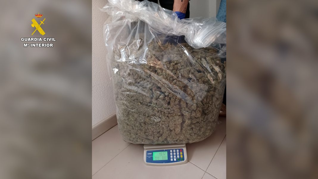 La Guardia Civil ha detenido en San Isidro a una pareja que salía de su domicilio con una maleta repleta de marihuana y un bolso con 12.000 euros en efectivo, cuando los agentes se disponían a detener al hombre como presunto autor de un delito de lesiones graves cometido el pasado 13 de agosto en Cox.